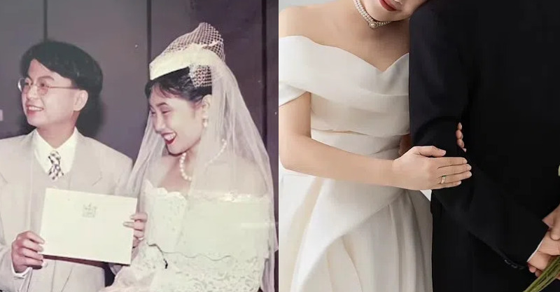 當55歲的高欣欣一連披上夢幻白紗、黑色調禮服,甚至還穿了中式婚服,她也燦笑像個小女孩,夫妻倆對著鏡頭擺出不同的姿勢,畫面既俏皮又甜蜜,她也不禁感嘆演戲拍婚紗跟自己穿真的差很多。
