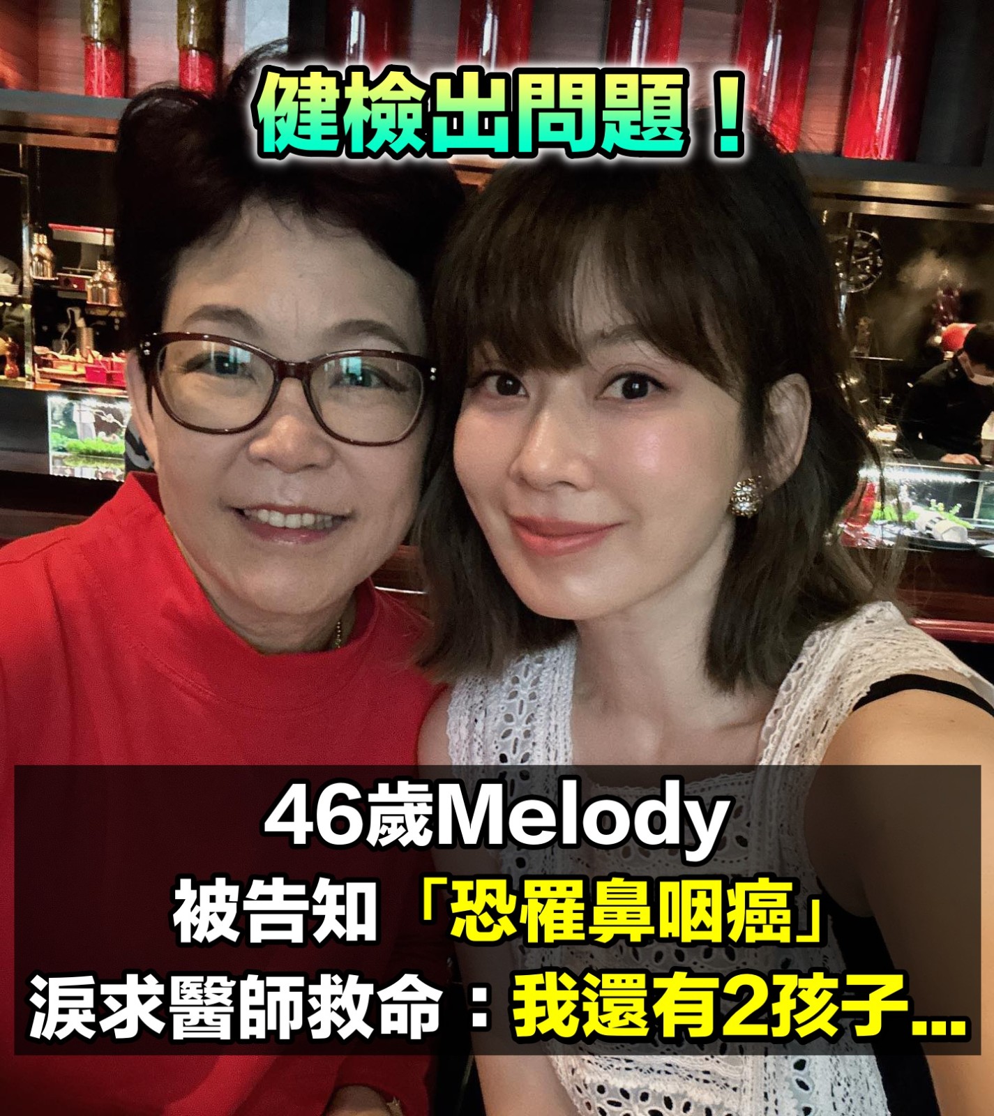 健檢出問題!46歲女星被告知「恐罹患鼻咽癌」當場潰堤 「爆哭3天瘦5公斤」苦求醫師:我還有2個孩子