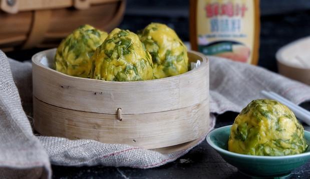3.蒸屜中放入屜布,再放入芹菜葉,中大火蒸15分鐘。