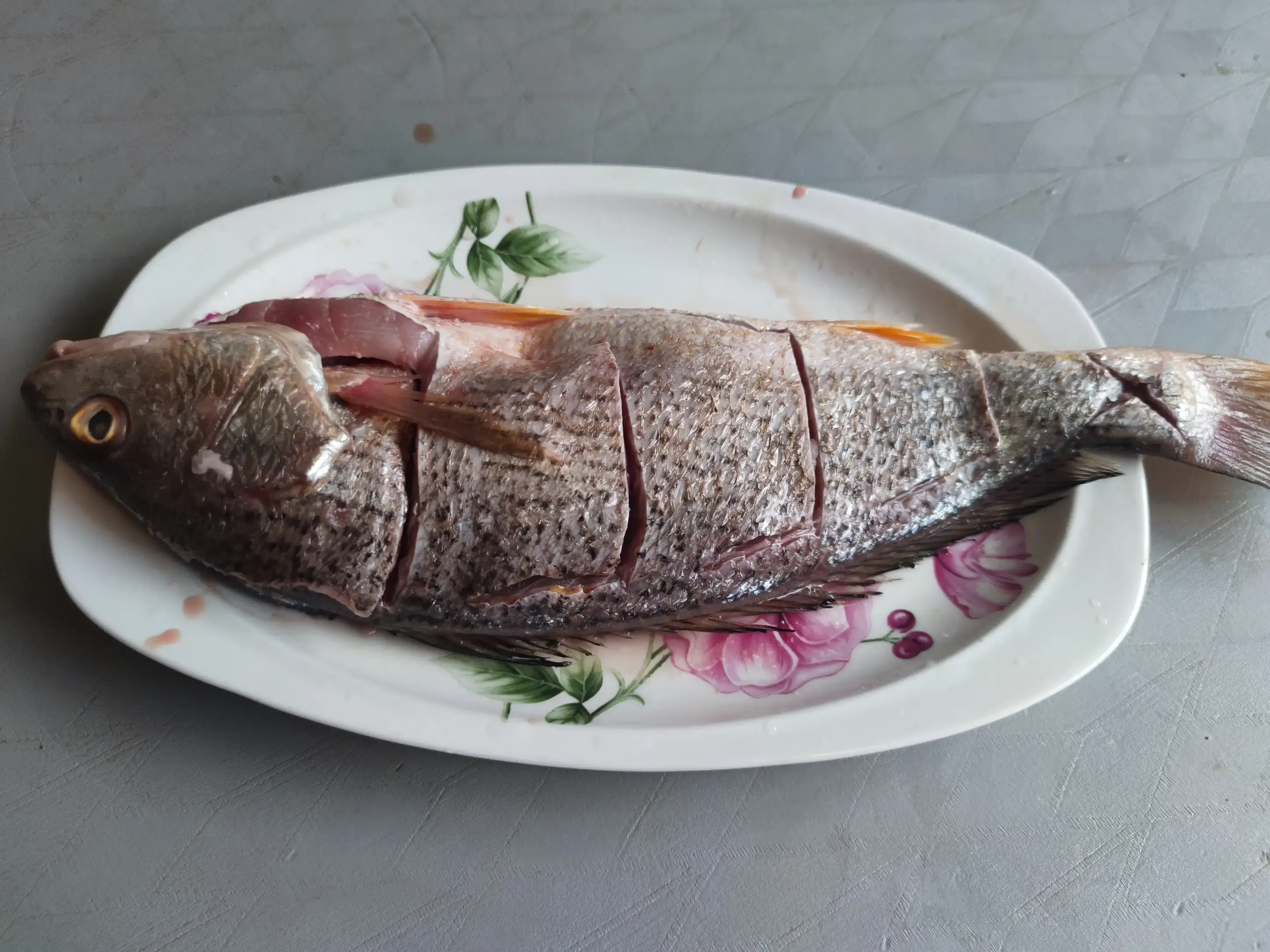 1.銅鑼魚去鱗、魚鰓和內臟清洗乾淨,然後在魚身兩側改上牡丹花刀,加入料酒和鹽把魚身揉搓均勻。