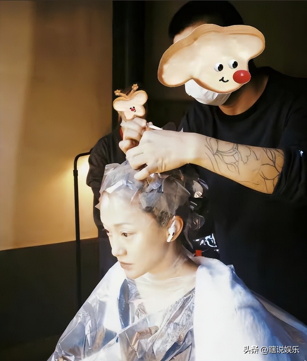 她還會分享自己在理髮店染髮的照片,圍著眼罩坐在椅子上,髮型師正在為她塗抹染膏。