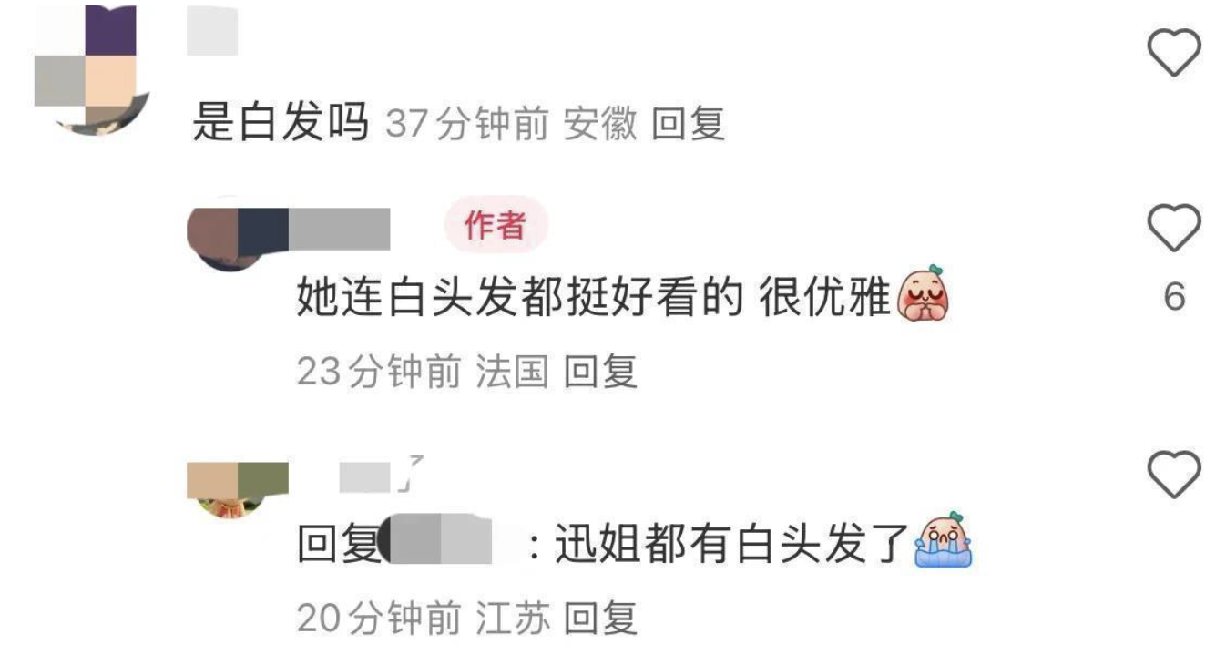 有網友調侃「姐,你讓賣染髮膏的怎麼活」,更有人直言「白髮是時光給的勳章」。
