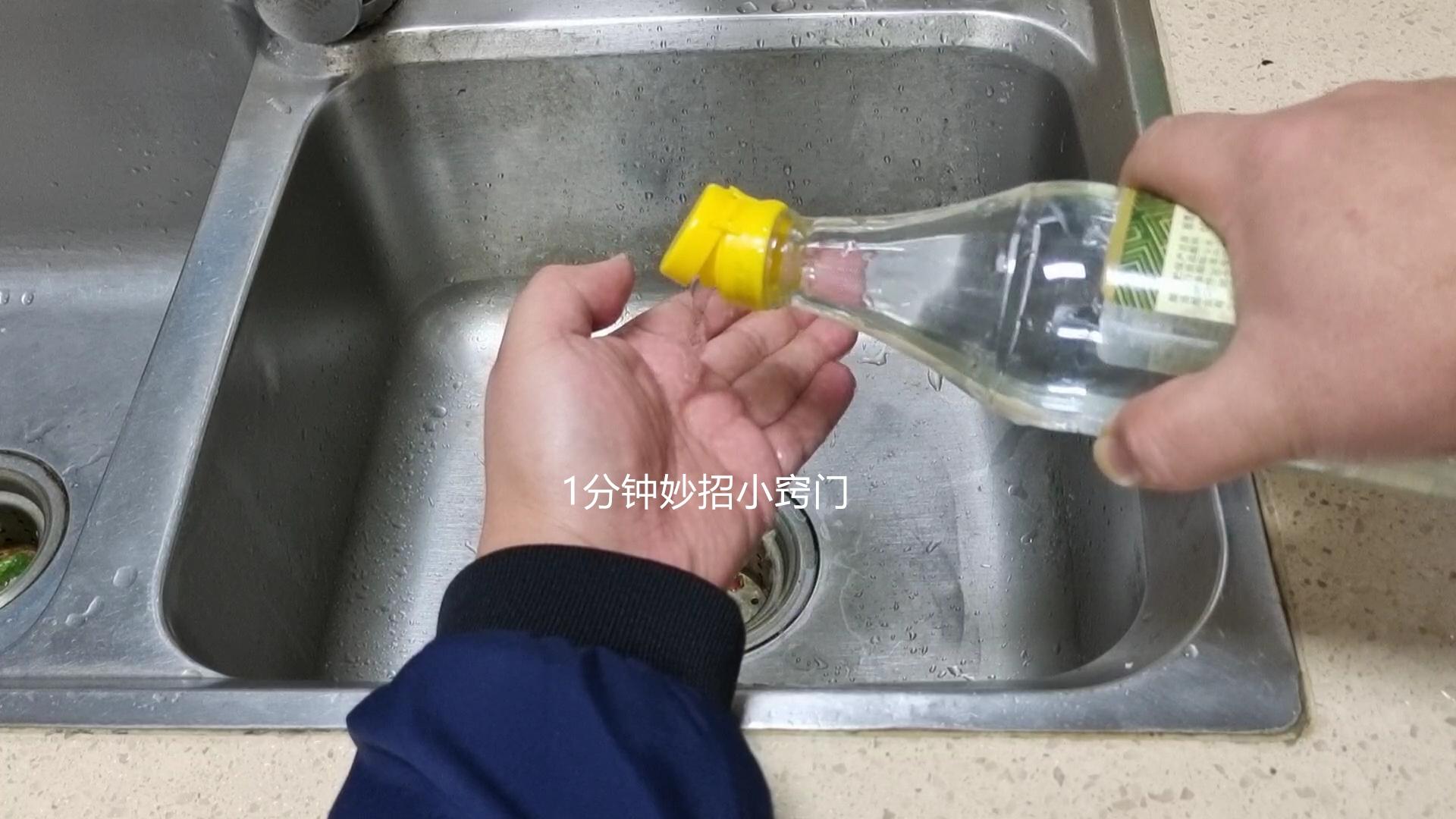我們把白醋倒在手心裡搓一搓,這個作用真是太棒了,簡單又實用,我也是現在才知道,學會之後回家試試吧。