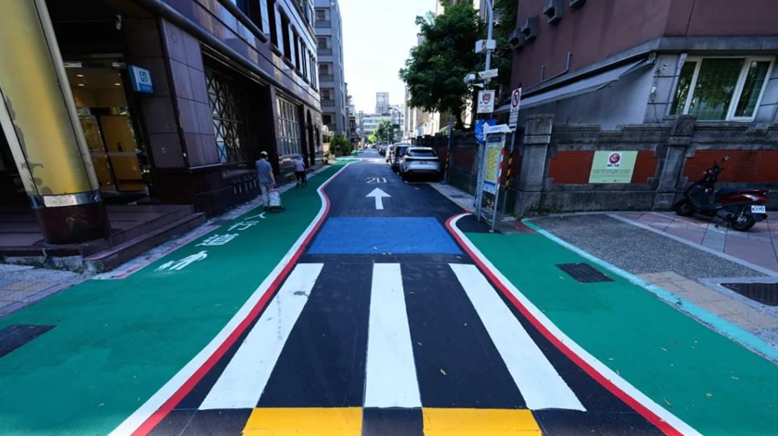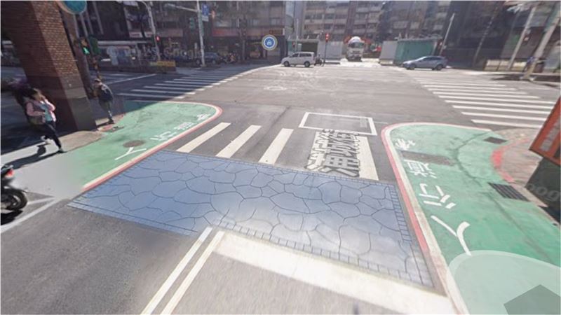經台北市政府交通局說明,這些藍色方塊絕非單純的裝飾設計,透露這是名為「行人友善區」的重要規劃之一。其設計目的在於提醒駕駛者降低車速、注意行人。據了解,這些區域還特別採用柏油壓花工法,當車輛行經時會產生震動,進一步加強警示功能。