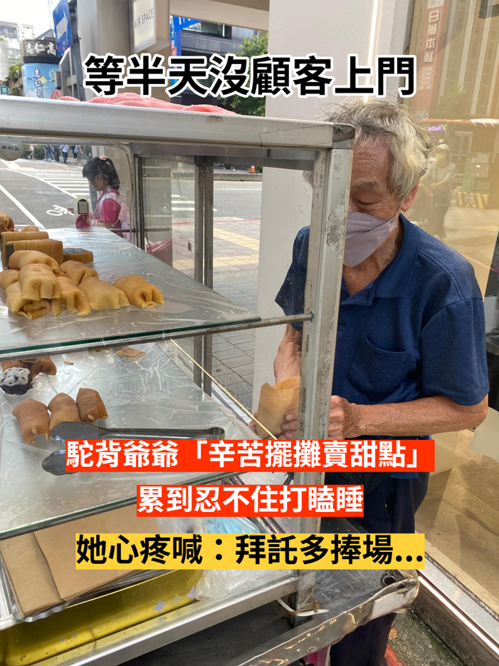 完全沒生意!駝背爺爺「路邊擺攤賣甜點」 苦等客人上門「累到忍不住打瞌睡」網號召消費