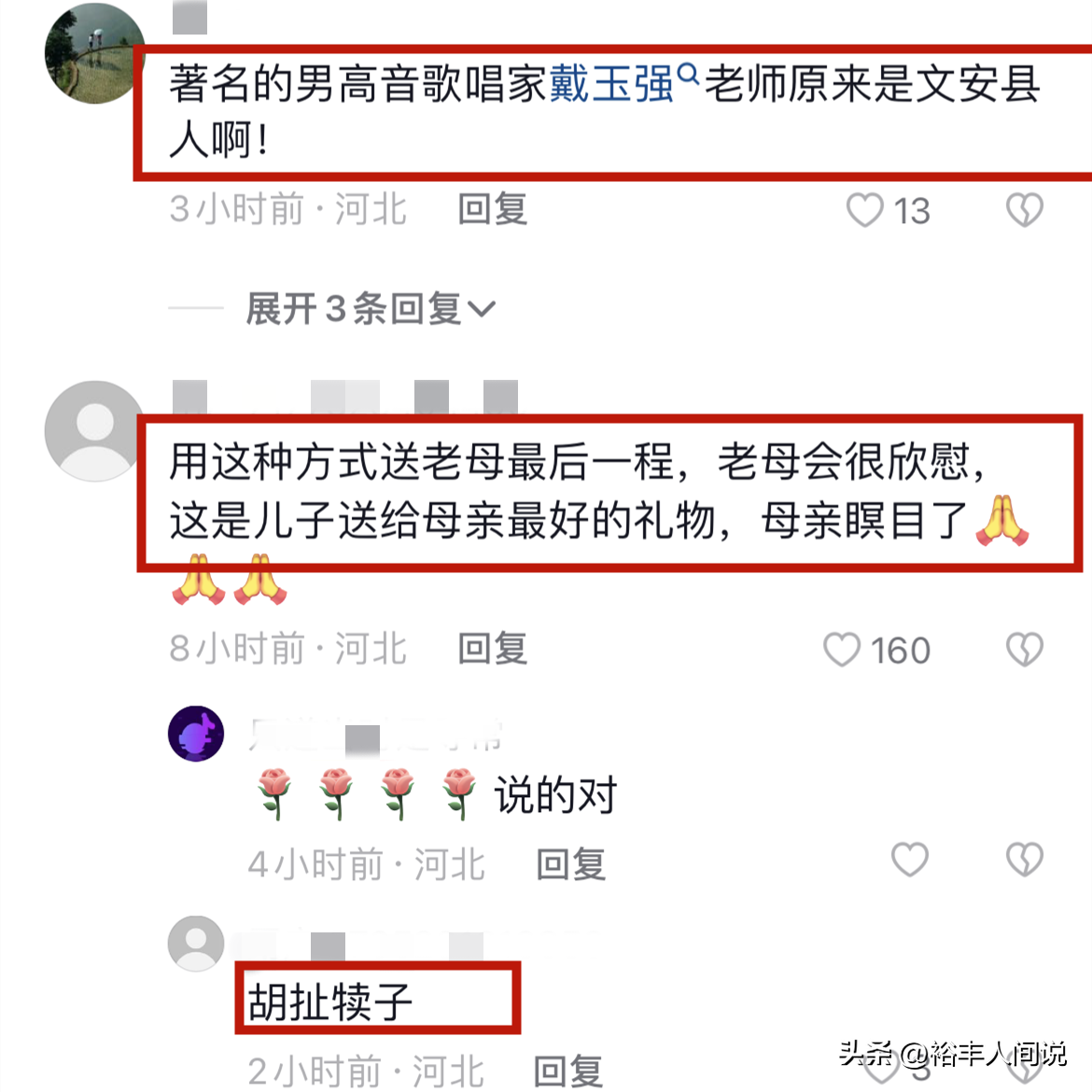 幾年前,有諸多來自河北廊坊文安縣的網友在影片帳號上分享一段葬禮的畫面,並在留言處透露,戴玉強的母親不幸去世,他則攜「戴家班」前往悼念,並為母親舉行隆重的葬禮儀式。