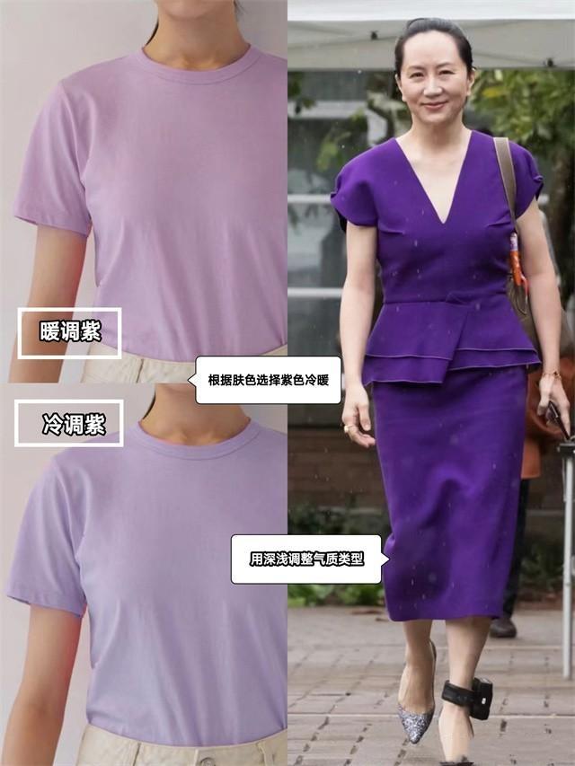 其次,就是帶有神秘感的紫色系,紫色氣屬於彩色當中色域比較偏下的顏色種類,對於五十歲以上的女性來說,不僅能穿出富態、貴氣的造型,還能提升氣質感。