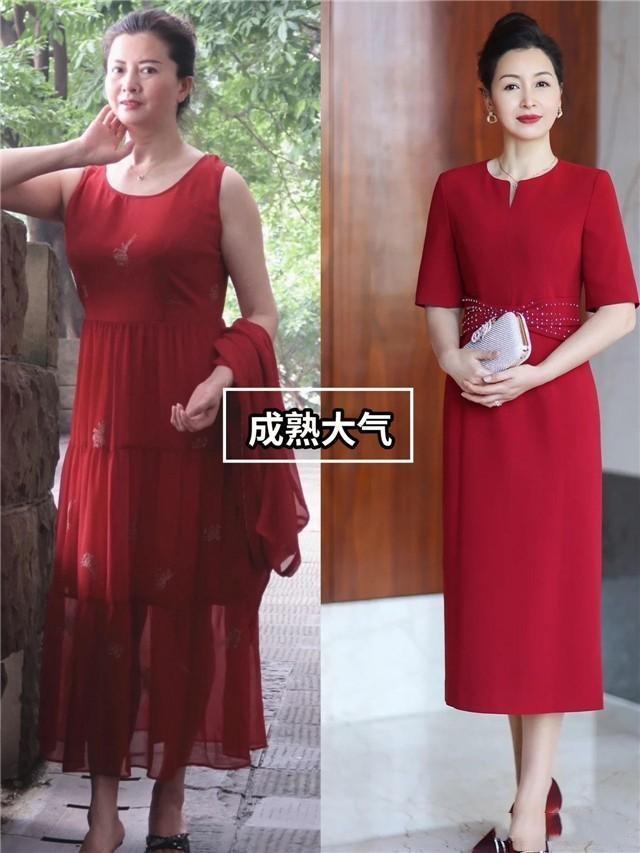 除了紫色之外,「紅色」也是中老年女人不能錯過的富貴色種類,紅色對膚色有極好的襯托效果,顯白的同時又可以打造出明艷大氣的造型。
