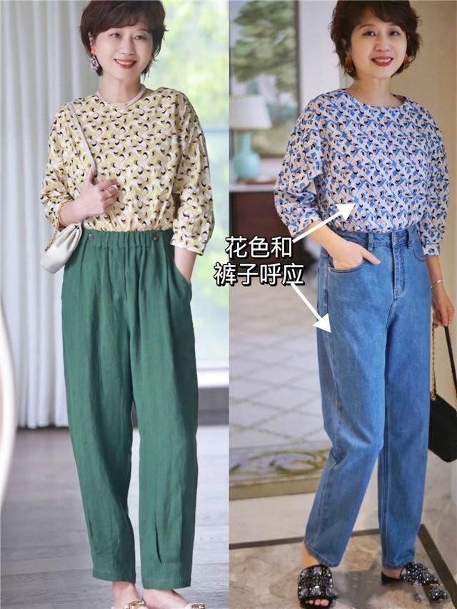 而要想穿出回頭率更高的造型,那就比較建議大家嘗試一下印花系列的上衣和純色長裙、長褲的搭配。不過要注意的是,最好是選擇與印花上衣底色相同的長裙,長褲可以打造出同色,但不同元素的配色效果,看起來會更有層次感。