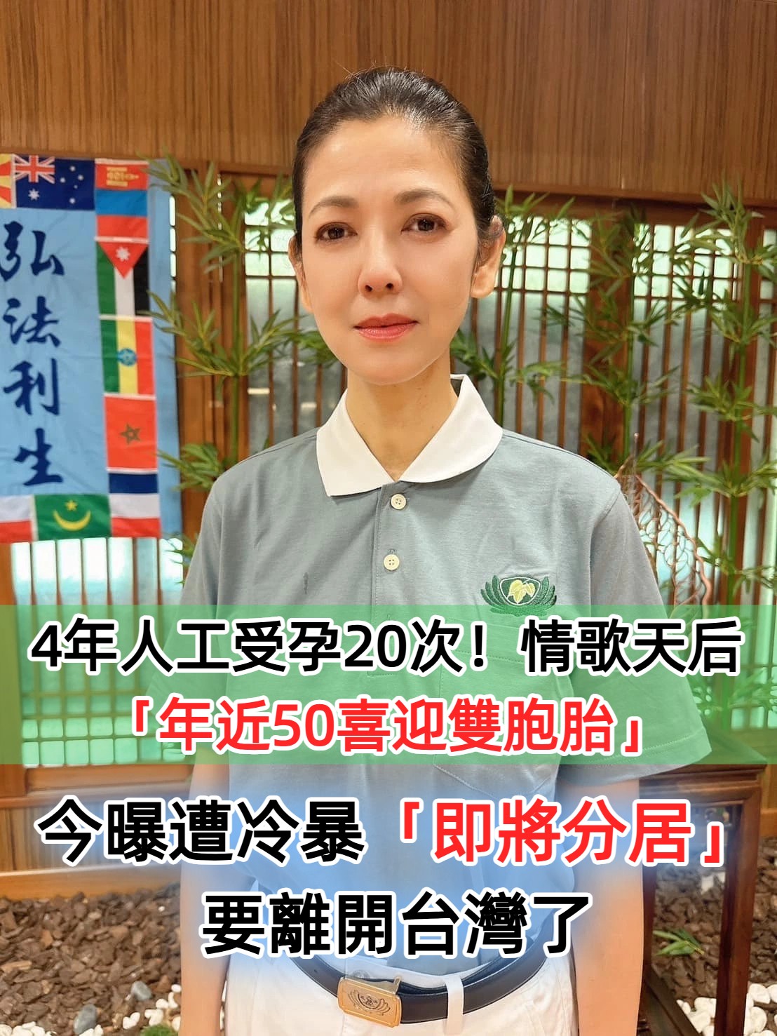 4年人工受孕20次!情歌天后「年近50喜迎雙胞胎」 今曝遭冷暴「即將分居」:要離開台灣了