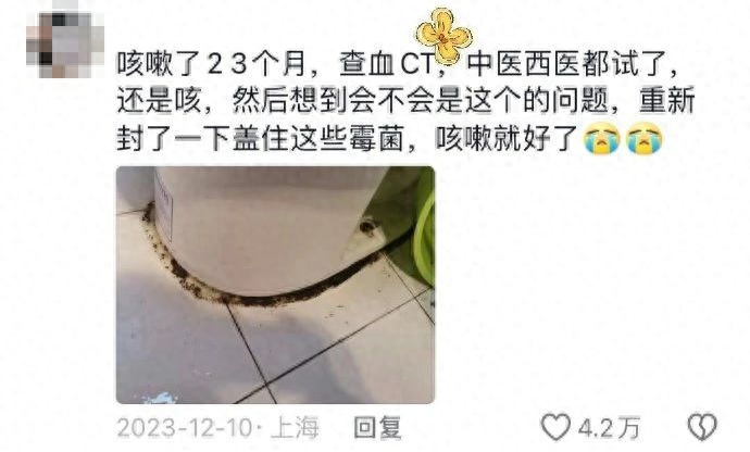 後來發現,家裡的馬桶下面有密密一圈黑色的黴菌,清理後重新封了膠,咳嗽竟然神奇地好了!