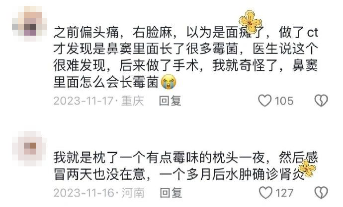 很多網友都分享了自己或者身邊人因為黴菌生病的經歷——