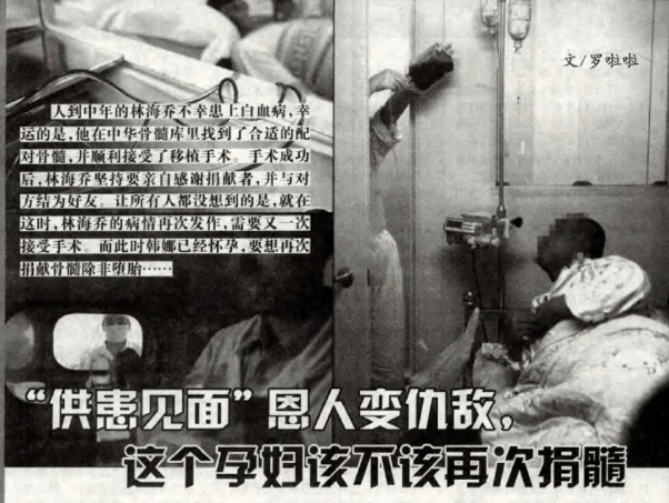 2008年6月,林海喬突然暈倒,被送往醫院後,醫生遺憾表示,他的白血病復發了,只能再次骨髓移植。林海喬第一個就想到了韓娜,但是,當他聯繫韓娜時,才得知她已經懷孕三個月。韓娜還是趕了過來,再次幫林海喬做了配型,然而,醫生卻表示,韓娜體內嬰兒的血液存在和林海喬相排斥的抗體,她的骨髓無法正常輸給林海喬了。