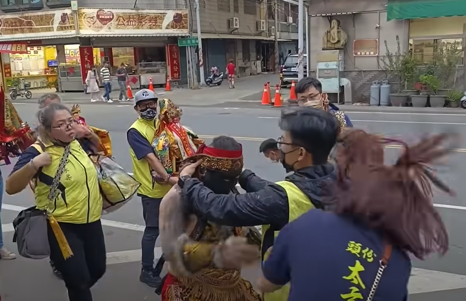 據《ETtoday新聞雲》報導,當時滿臉塗滿炭墨,正準備迎接「墨龍中壇元帥」降臨的乩童正在馬路上醞釀,身前男子則緊扣他的頭部防止失控,一旁則圍繞一群身穿宮廟服裝的男女,靜待神明降駕。霎那間,乩童右手突然揮出,一巴掌直接打在一名短髮女子臉上,聲音相當響亮,女子也因此踉蹌向後,轉了大半圈。