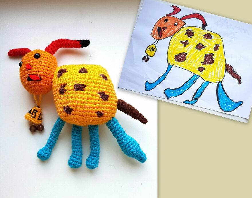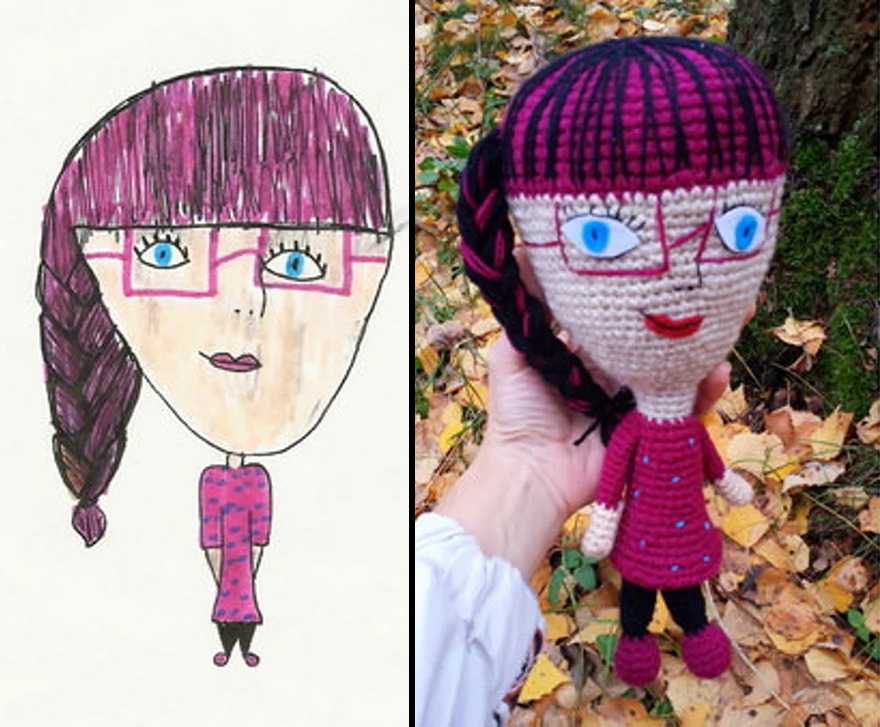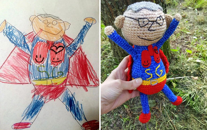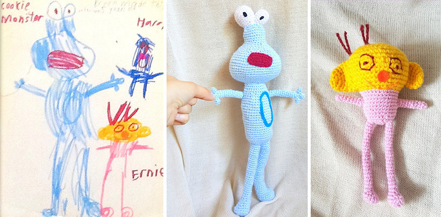 把小孩的畫畫做成真實的編織玩具超有創意,不僅神還原還可以給孩子自己玩呢!!!