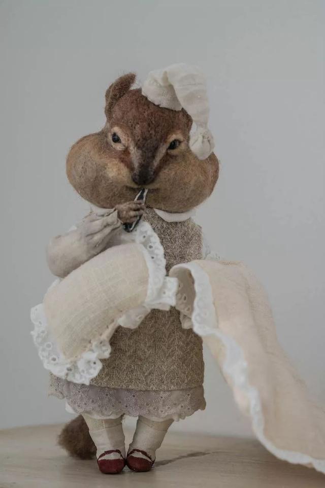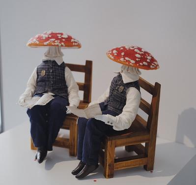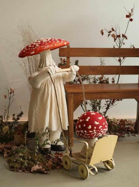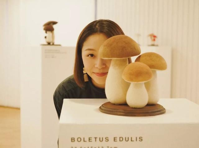 殷越也表示:「羊毛氈最吸引我的是材質本身的獨特,這種材料它源於生命,自帶溫度感,做出來的作品絨絨的很有親和力很溫暖,尤其表現動物類造型時,比其他材質更有生命感。」她最喜歡的羊毛氈主題就是動物和蘑菇,甚至還曾創作過一系列蘑菇人的作品!