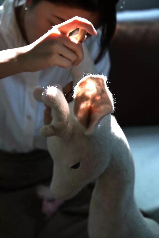 2009年時,正在思考未來的殷越偶然在網上看到了日本職人鈴木千晶(Chiaki Suzuki)的羊毛氈作品,她立刻對這種毛絨絨又帶有溫度的材質產生了興趣,當時羊毛氈還不太普及,因此她跑了好幾家店才買到材料,沒想到從此就一頭栽進了羊毛氈的世界!