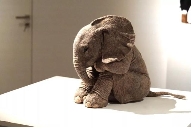 她另外一個知名的作品就是名為《想心事》的一隻小象,只見小象半瞇著眼睛、微微低頭沉思,似乎心中隱藏了無數的淚水與心事,而在製作過程中殷越也花了特別的心思:「做這個小象用的羊毛很軟,花了很長的時間去雕刻細節,堆砌出這種褶皺的感覺。」