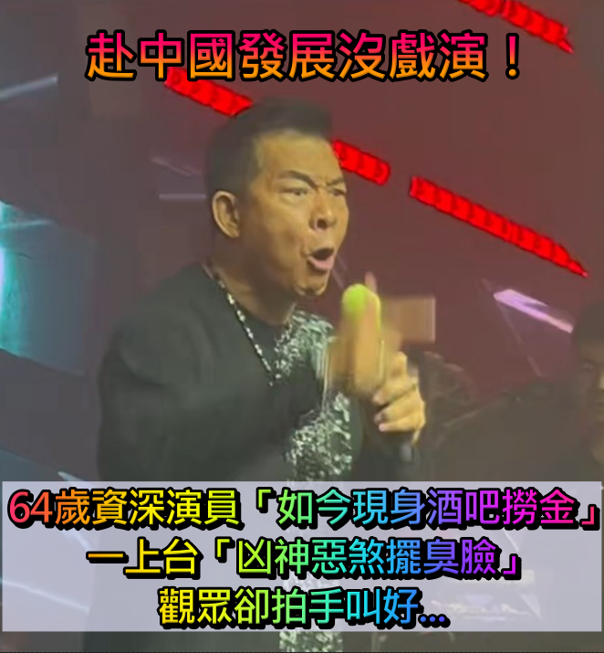 到中國發展沒戲演!64歲資深演員「如今現身酒吧撈金」 一上台「凶神惡煞擺臭臉」觀眾卻拍手叫好