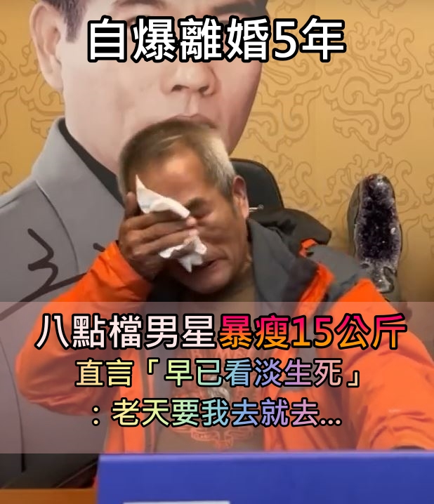 自爆離婚5年!八點檔男星「體重暴瘦15公斤」 曝健康狀況「早已看淡生死」:老天要我去就去 Alice 2025-08-07 檢舉 (圖片來源:臉書)希望他的生活一切順~來源:setn Advertisements 回首頁 2/2 Advertisements 猜你會喜歡 當年紅遍全球!資深女星「當年超美金髮外貌」迷倒無數人 如今「變白髮老奶奶」沒人認出 編輯精選推薦 More + 台語歌后慟別摯愛!告別式上認「早隱瞞病情」 道歉哭喊:原諒我簽放棄急救 空窗多年!68歲陳美鳳突羞認「身邊有個他」 40年前就認識「遭男方母親拆散」 趕在40歲前閃婚!八點檔女星「宣布嫁給他」 尪驚人身分曝「媒人是柯叔元」 晚年兒孫滿堂!73歲影壇大哥「拄拐杖現身」腳步蹣跚 兒子「全程攙扶不喊累」網羨:又帥又孝順 李英愛輸了!73歲富商尪「超凍齡像40壯年」站一起超登對 「不時甜蜜咬耳朵」網羨慕 婚變尪落跑!單親媽「獨扛千萬債養孩」到處躲黑道 「一開口驚艷眾人」熬成台灣歌后 台灣大咖病逝「享壽83歲」!周遊告別式痛哭「認婚內出軌」:兒子很恨我... 再婚2年了!43歲李燕突喊「當媽媽實在太辛苦」 認「已經有愛的結晶」:最完美的幸福❤️ 功德圓滿了!台語歌后「悲曝他離世」享壽95歲 淚喊:去當快樂的神仙吧... 快養不起小孩!本土男星「開計程車、斜槓房仲」 突宣布「離開台灣」:演藝圈沒工作 曾比江蕙紅!台語歌后「爆未婚生子」遭指指點點 「2次手術害癱瘓」72歲近況曝 旅美多年!資深女星「堅持落葉歸根」回國5天安詳離世 死前「砸600萬做1事」眾人淚目 離婚11年!洪榮宏愛女結婚「終破冰前妻」 「2爸爸牽她進場」催淚畫面曝 相差18歲!58歲康康自爆「與老婆分房12年」驚呆眾人 提到沈玉琳「坦言罹同1病」:必須警惕... 24歲兒失明!于美人爆「他在飯店掃廁所」維生 不盼紅包只求「別再花我的錢」 22歲愛女病逝!資深男星「走不出喪女痛」留白長髮現身 掛骨灰項鍊「代女做1事」惹淚 65歲男星獨居暴斃!大咖女星放下恩怨「送前夫最後一程」 昔遭動手6年嘆「死者為大」 慶祝17歲愛女畢業!53歲大咖「兒女皆讀名校」年花千萬 驕傲「她獲三大獎」:又美又自信 最新/賈靜雯深夜慟曝「她已離世」 淚PO合照喊:真的好愛你... 確診甲狀腺癌!44歲男星「術後近況曝光」哽咽:她為我祈禱 「告白演員愛妻」愛不會停止 85歲失智父身亡!林葉亭突宣布「皈依佛門」 遇大師「開示一番話」忍不住淚崩 當年親吻1歲嬰!42年後「對方竟成巨星」同框劉德華 「超高顏值如兄弟」粉絲喊:真的差19歲? 本土劇女星生了!7年前凍卵「終於來到我身邊」 歌手尪嗨喊:生個足球隊 以為只是小感冒!本土女星悲痛證實「他併發肺炎過世」 一度淚灑現場「後悔同意插管」 大咖男星妹妹出嫁!全身金飾「曾獲近千萬豪宅」嫁妝豐厚 兄妹長超像「一看媽媽懂了」:基因強大
