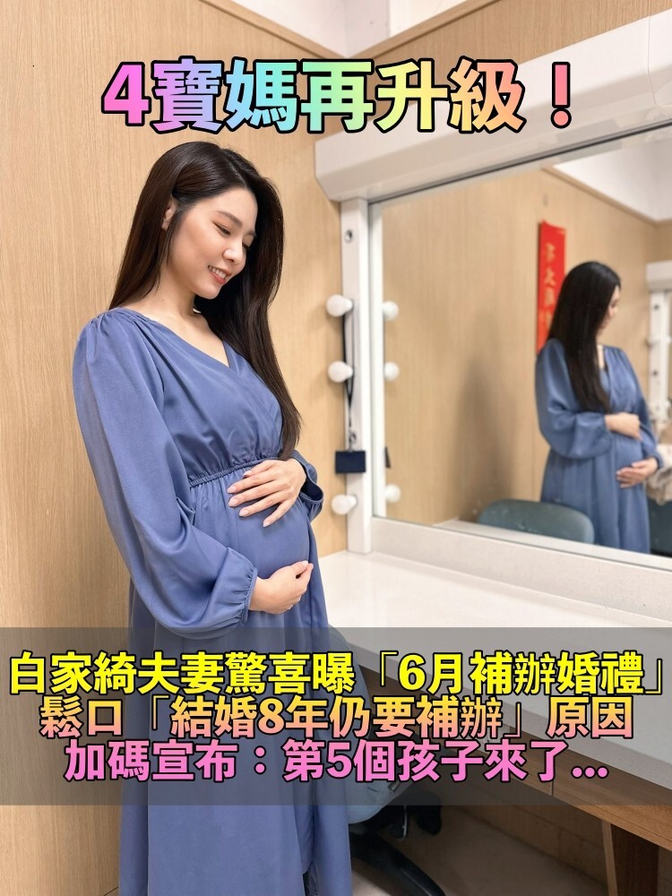 白家綺夫妻宣布「6月補辦婚禮」!親公布喜訊「第5寶報到」 鬆口「結婚8年仍要補辦」原因