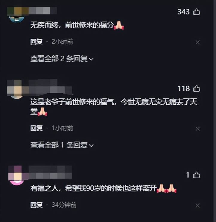 「壽終正寢的老人都是有福之人,願他們一路走好,安息吧!」