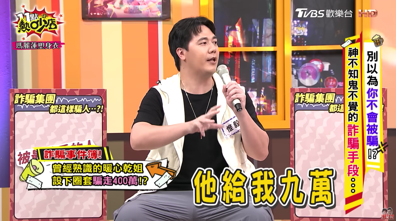 40歲台灣男星林惟毅,出道後便擔任知名行腳節目《冒險王》主持,並在之後參與《愛玩客》節目,並以樸實形象深植人心,收穫不少婆媽粉絲。不過,他上節目《11點熱吵店》坦言,曾被一位同在演藝圈的「乾姐」設局,被騙走身家400萬元,甚至連家人也一併被拖下水,戶頭更只剩下3元,相當淒慘。