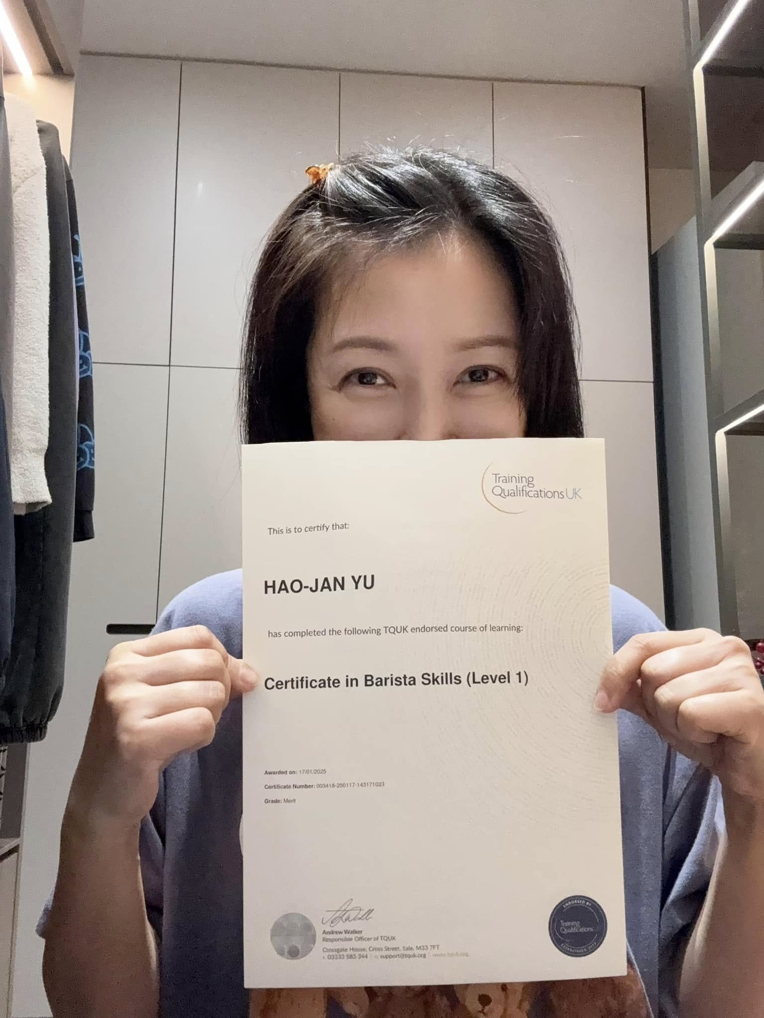 52歲余皓然日前分享喜訊,透露自己拿下了第三張證照,感嘆:「雖然都是些初級的學習,但活到老學到老,滿滿的成就感!」仔細一看,這次考取的是「Certificate in Barista Skills Level 1(咖啡師技能證照)」,用行動展現終身學習的精神,從演藝事業跨足餐飲領域,不斷精進自我。