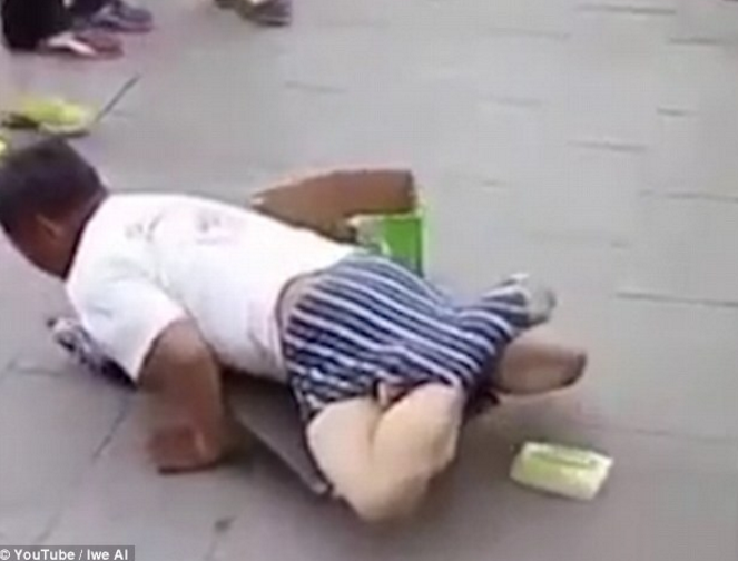 日前,在中國大陸街上有名失去雙腳的乞討人趴在滑板上,用雙手一步步往前爬行,這一幕不管誰看了都不捨,但卻有一名男子走到他旁邊後......突然猛力將乞討人的褲子一把脫下!