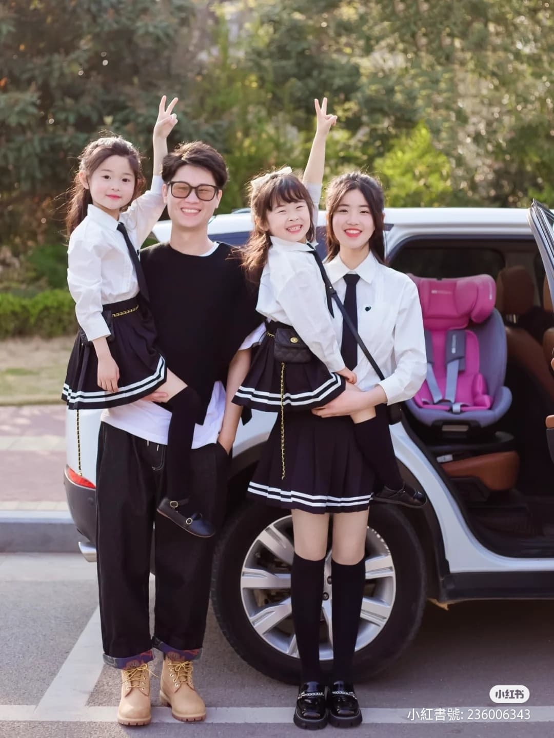 而且更棒的是,他們不僅母女三人都非常時尚之外,老公也是一位懂穿搭的帥氣潮爸唷,如此幸福的一家人讓人看了還真是著實地羨慕呢~