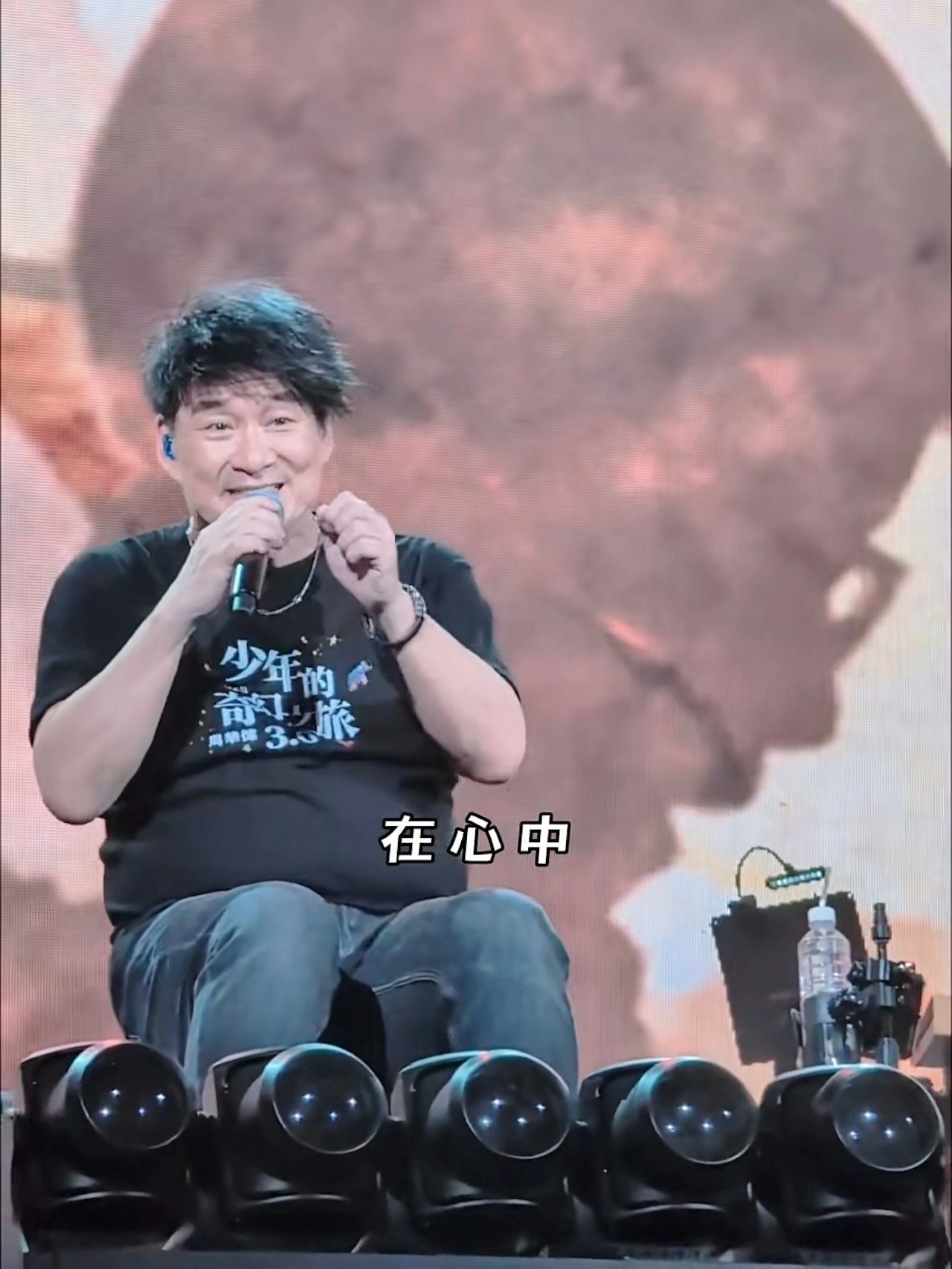 不少歌迷將演唱會現場片段上傳至社群平台分享,其中一段影片裡,身穿黑色演唱會T恤搭配牛仔褲的周華健坐在舞台上深情演唱《朋友》,嗓音依舊渾厚動人,台下歌迷聽得如痴如醉。然而,有眼尖網友卻把焦點放在他凸出的腹部