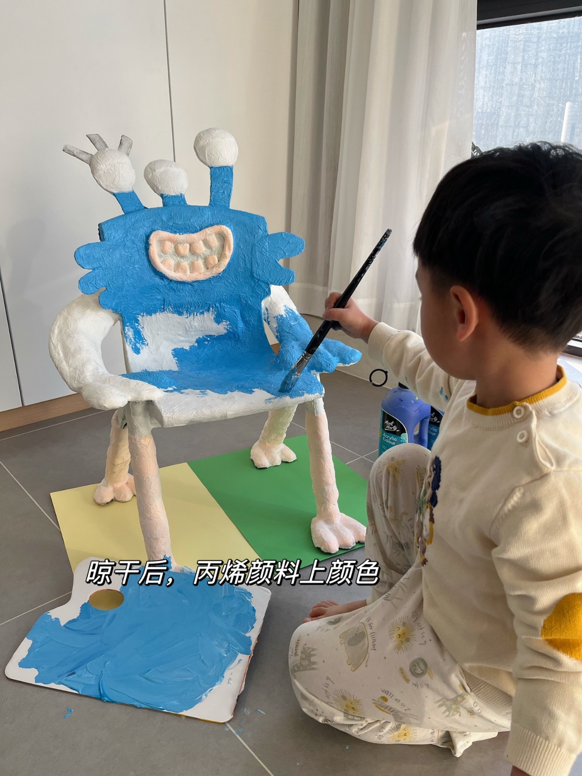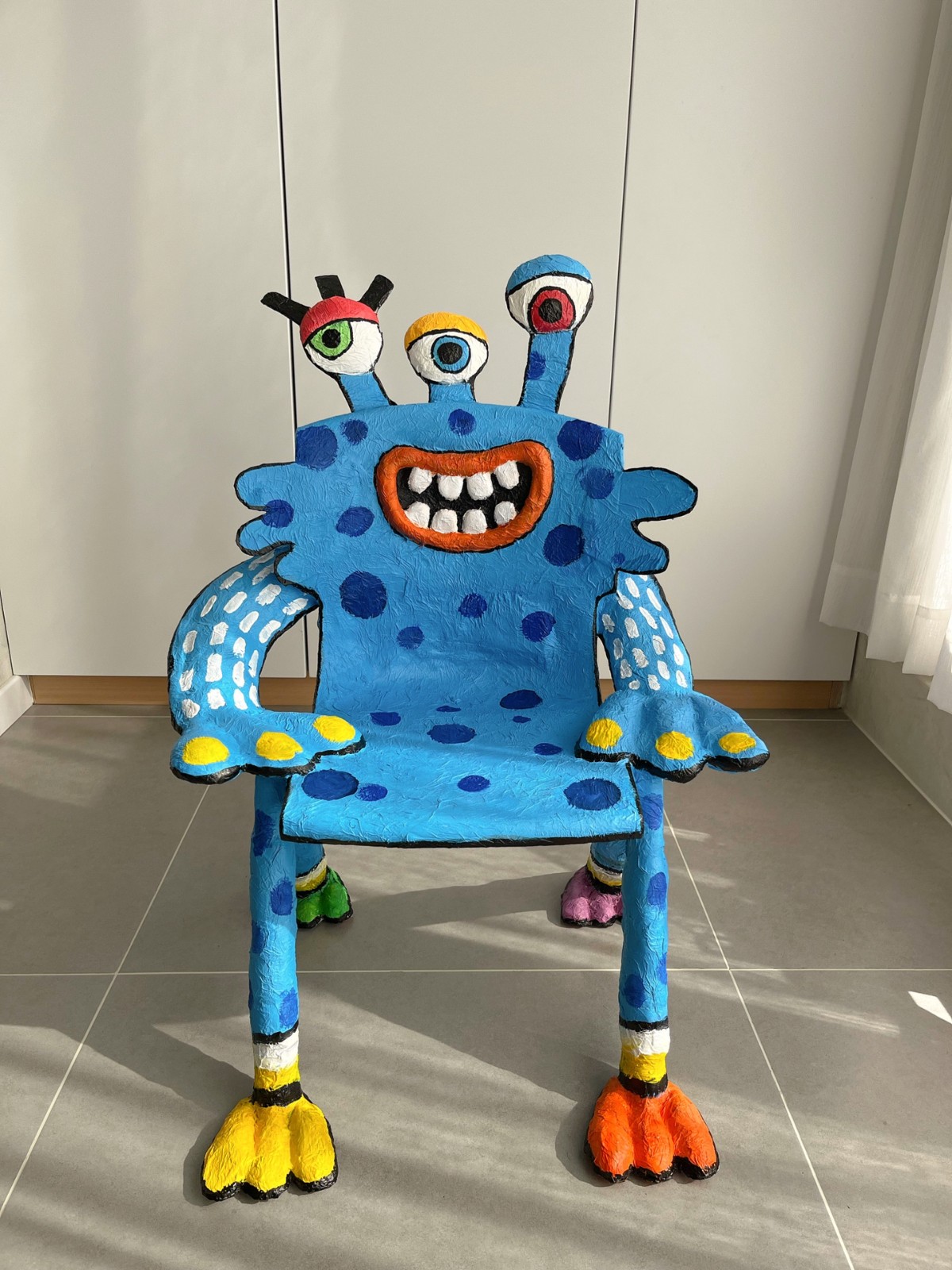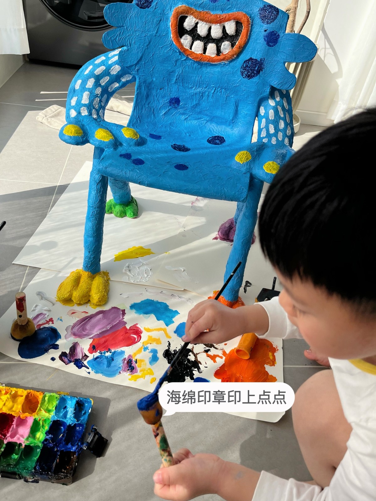 可愛到想出價買!神手媽媽「揪兒子改造家中舊椅子」 簡單步驟「變出超Q萌怪獸凳子」看了直接跪