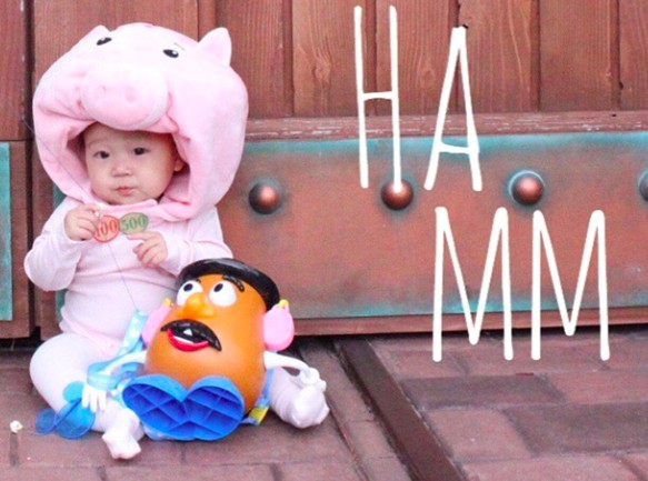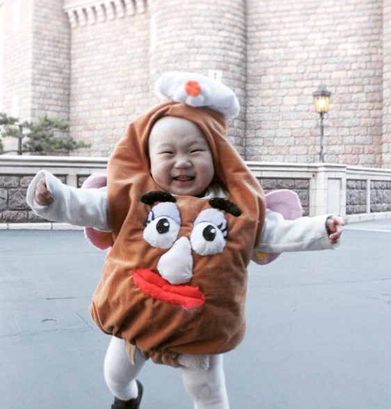 毛怪寶寶還曾打扮成各種卡通角色,不論是玩具總動員還是冰雪奇緣都有!