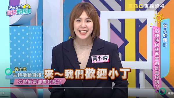 於是等到活動開始、迎接董事長上台時,黃小柔也開心大喊:「來~我們歡迎小丁」,讓原本的丁董瞬間變成小丁!沒發現已經講錯的黃小柔,後續在台上找到董事在的座位後,也再度用力招手表示「小丁你上來」,當時董事長的臉已經略顯尷尬,不過覺得氣氛正嗨的黃小柔也沒發覺,更繼續鼓吹:「小丁你是不是想要送大家禮物?」