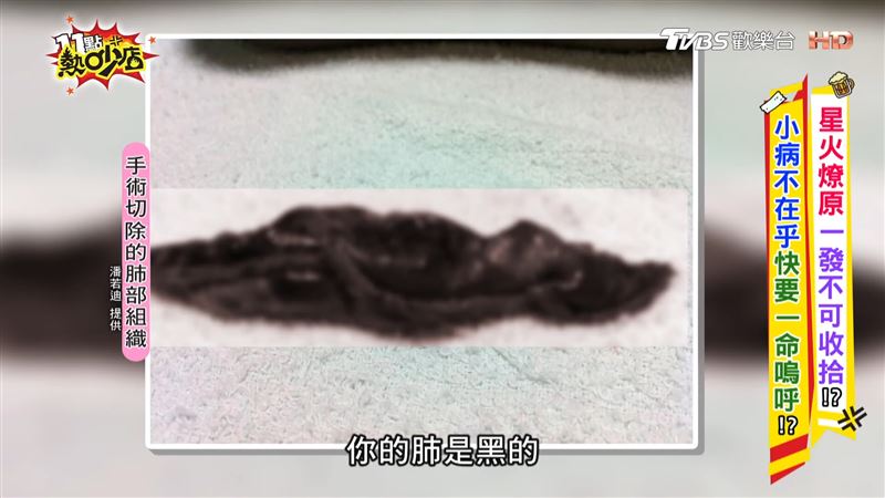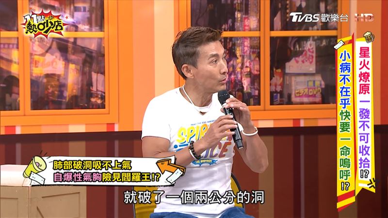 這次發病源於長期在密閉空間授課,吸入過多學員呼出的二氧化碳所致,坦言有段時間他無法一氣呵成唱跳整首歌曲,公開當時切除的肺部組織,竟全是黑的,老婆趕去簽署放棄急救同意書,嚇壞抱怨:「剛嫁給你就給我搞這個!」