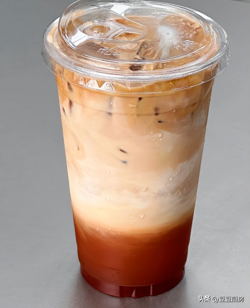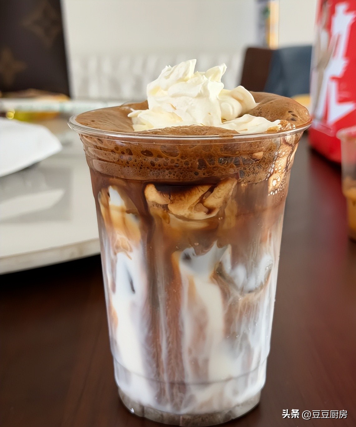 這跟咖啡有什麼關係?拆解成分你就會背脊發涼:這裡面幾乎沒有咖啡的痕跡。它的主體是「冰塊+加糖的奶漿+植脂末(非乳制奶油)」,頂部的奶油全是植物淡奶油打發出來的,焦糖醬更是純粹的糖漿。