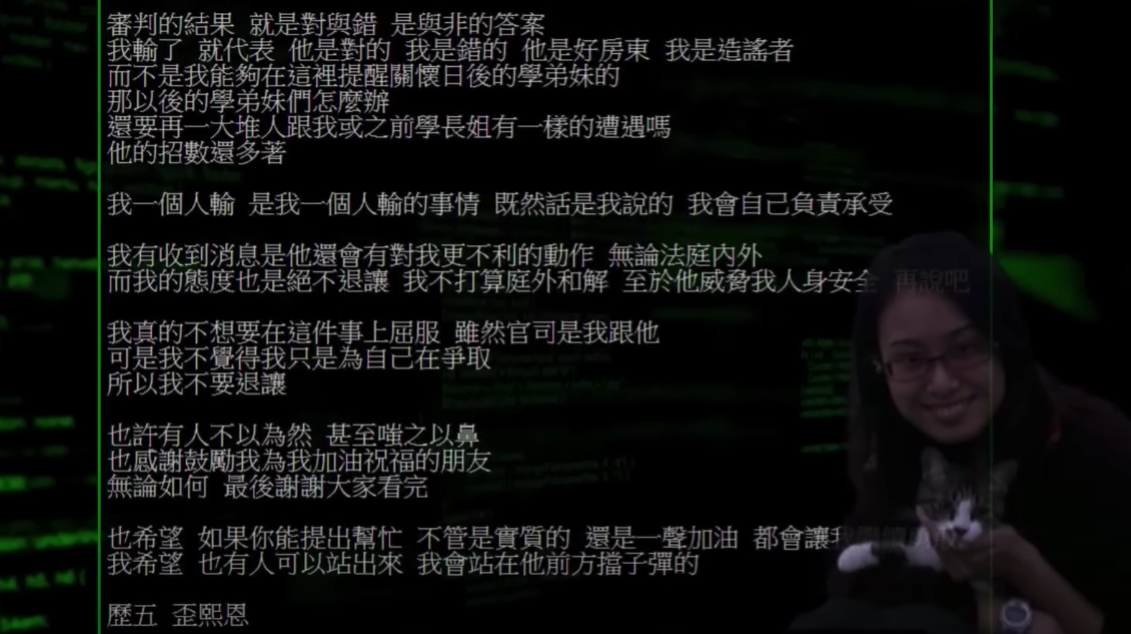 東華大學15年前悲劇!她遭惡房東報復「樓梯間絕望上吊」 死前留血淚遺書「絕不跟吳老奸低頭」震撼全台灣