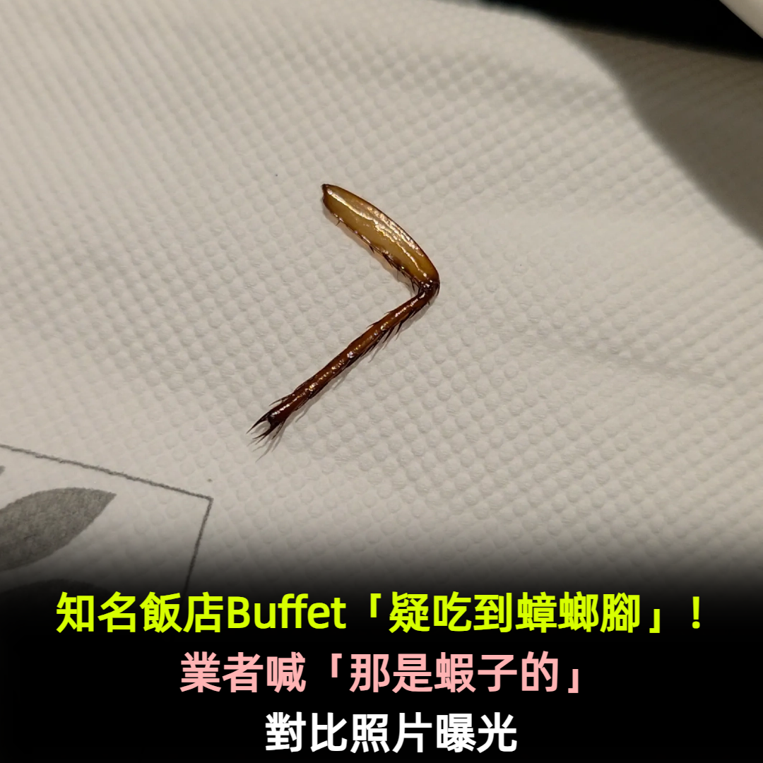 知名飯店Buffet「疑吃到蟑螂腳」照片曝光!業者喊:「那是蝦子的」