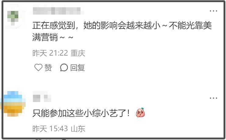 有網友認為,baby經歷了風波之後,她的影響力越來越小,即便上熱搜,也是營銷美麗和顏值的,現在參加的活動都不痛不癢,咖位段位大不如以前。