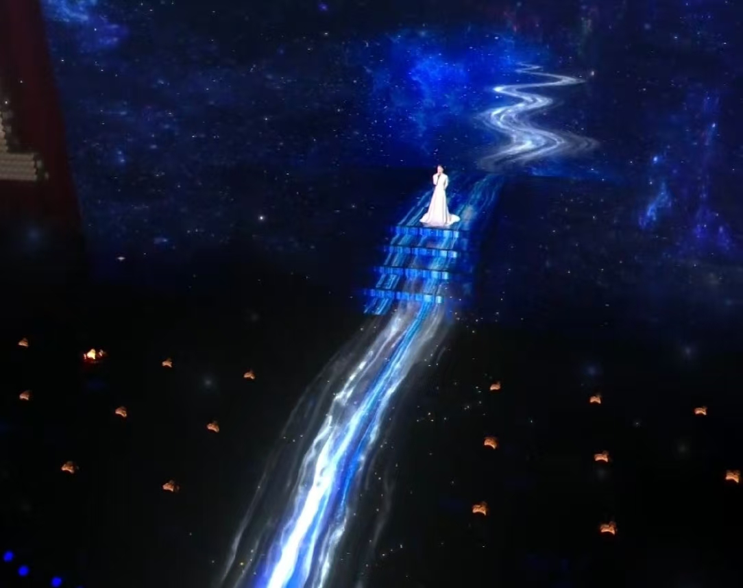 春晚給足了王菲體面和尊重,舞台設計十分驚艷:銀河、星空、宇宙、長河,大氣又深邃。