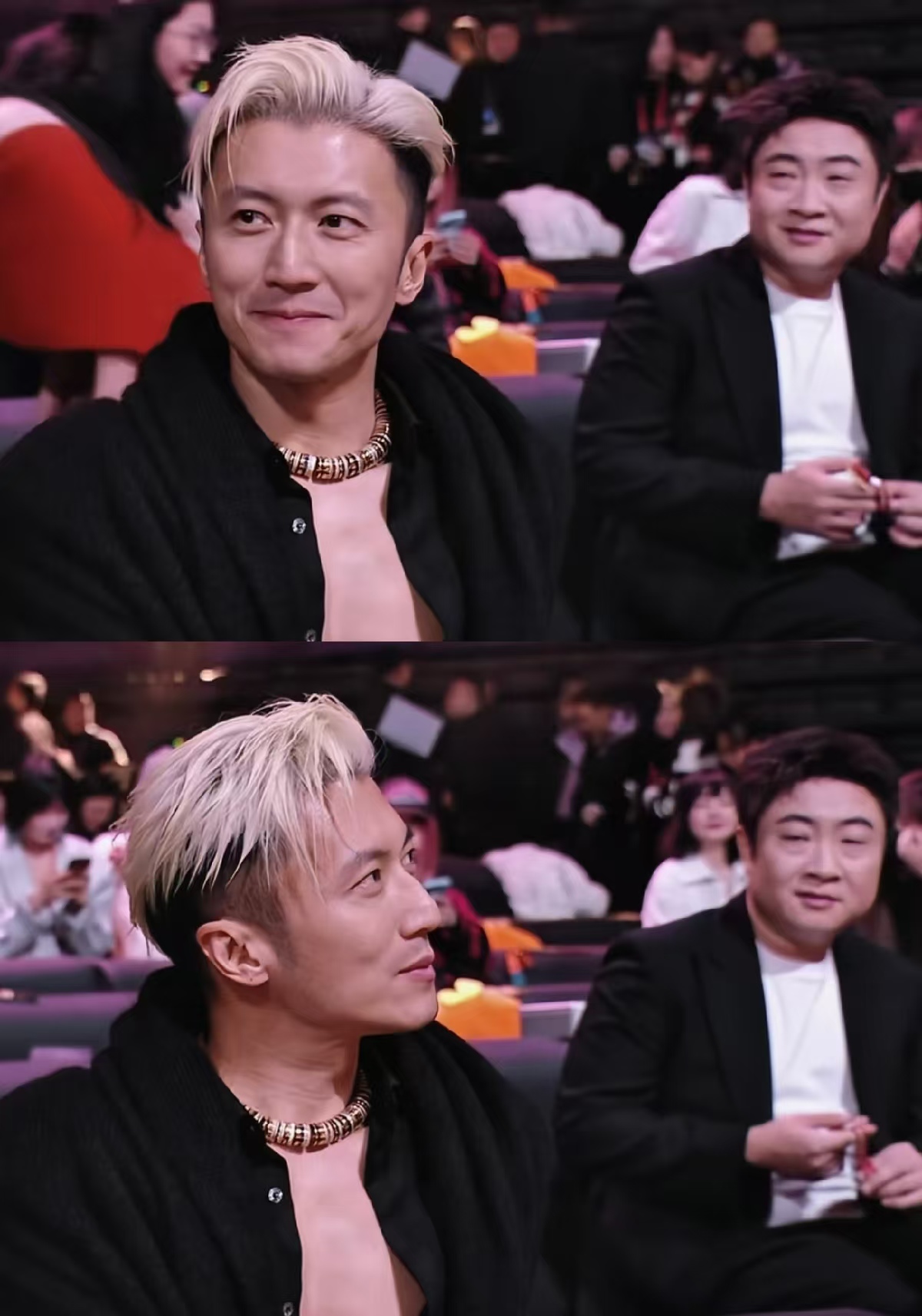 前段時間,謝霆鋒參加微博之夜時,坐在喬杉右前方,當時影片流出後,網友根據喬杉的眼神進行了各種解讀:喬杉的眼睛沒有謝霆鋒的臥蠶大、喬杉原本計劃長這樣、窮酸車看法拉利等等。