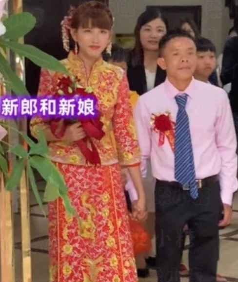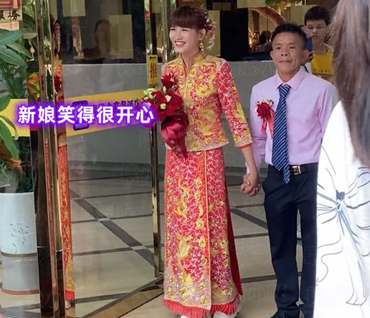 這場婚禮於廣東省湛江市的一家飯店內舉行,該名新娘年僅19歲,身材相當高挑,而站在她身旁的新郎則是位30歲的矮男子,站在新娘旁邊身形顯得格外嬌小,但即便兩人看起來不太登對,但新娘卻笑得非常開心,臉上洋溢著幸福表情。
