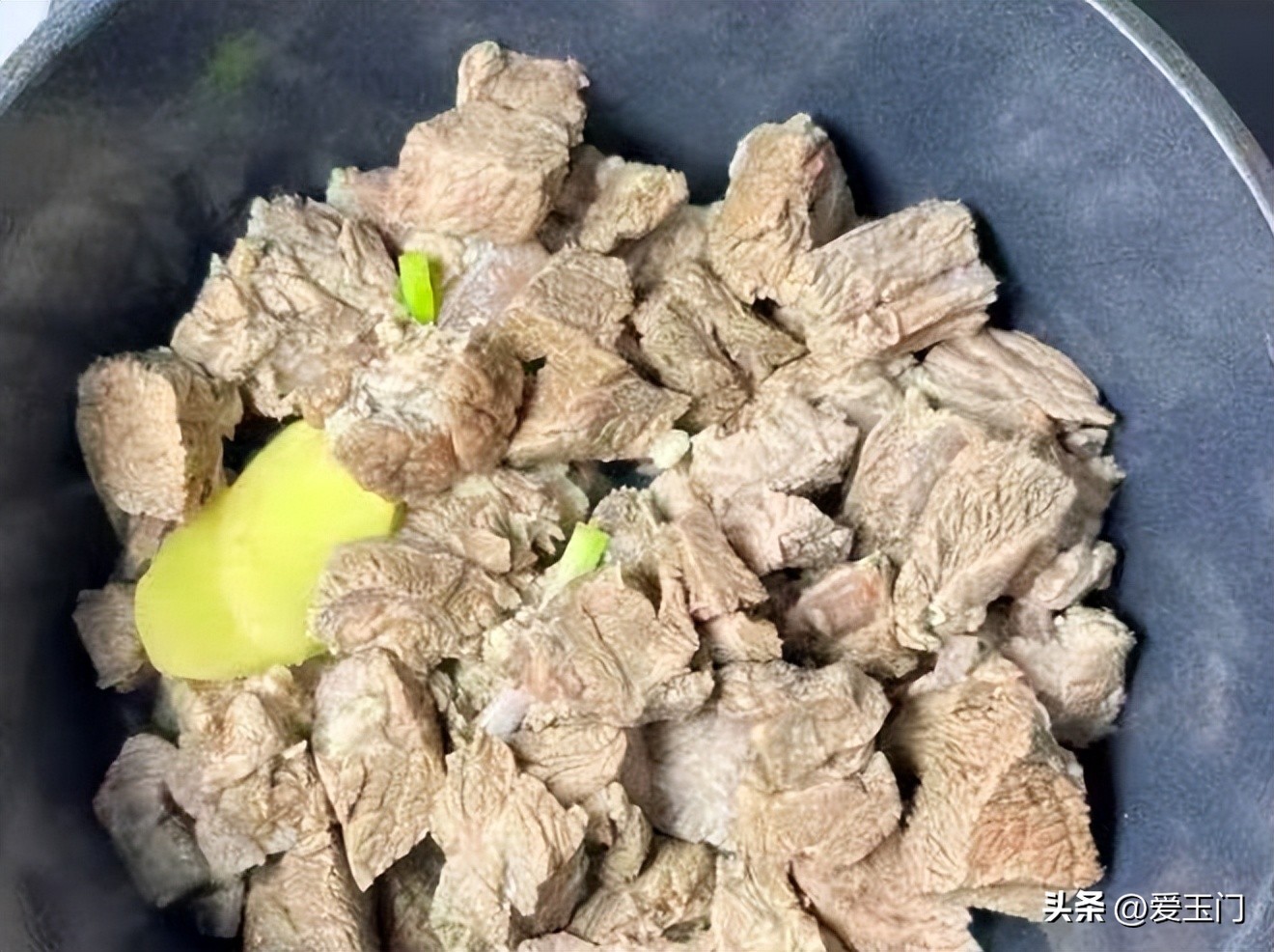 1、牛肉洗凈切塊冷水下鍋焯水,撈起沖洗乾淨瀝乾水待用。