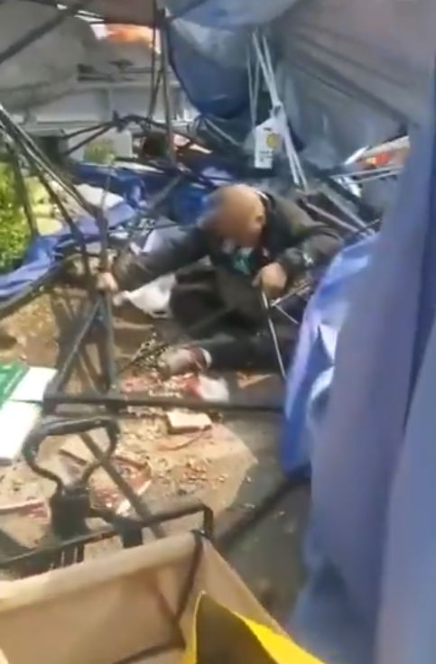 事發現場一片狼藉,地面散布著大量雜亂物品,帳棚也被撞得歪七扭八,許多人橫躺在地毫無動靜,地上還出現了疑似血液的痕跡。最終有勇敢的民眾合力將這名駕駛從鏟土機上強行拖出,並對他展開圍毆。