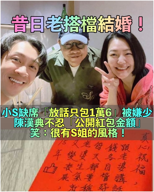 然而根據《東森娛樂》報導,陳漢典經紀人低調透露,原來小S實際包的紅包遠遠超過對外放話的1萬6千元,金額竟還高達10萬元!經紀人表示,原本不打算對外說明金額,但擔心這樣對小S不公平,強調「每位賓客都是新人珍惜的對象,金額並非重點,希望別造成祝福者的困擾。」