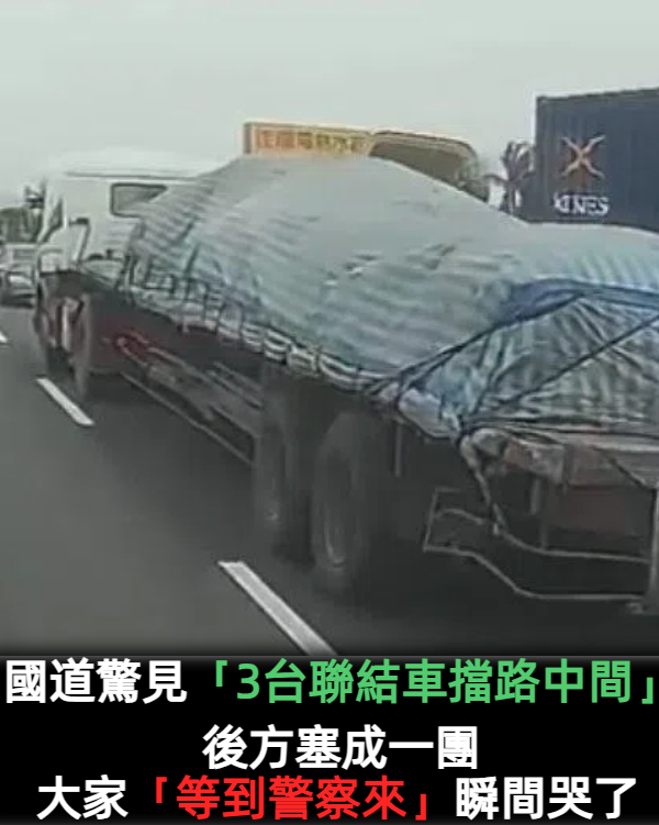 半條路被封!國道驚見「3台聯結車擋路中間」後方塞成一團 大家「等到警察來」瞬間哭了