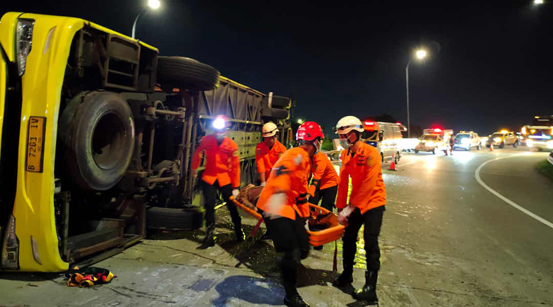 從電視新聞播出的畫面可見,黃色車身的巴士橫躺路邊,大批搜救人員、警察及民眾聚集搶救,多輛救護車來回奔波運送傷者與罹難者大體,整起事件導致至少16人喪命、18人掛彩送醫,18名受傷乘客被緊急分送至兩間醫院救治,其中5人傷勢嚴重、情況危急