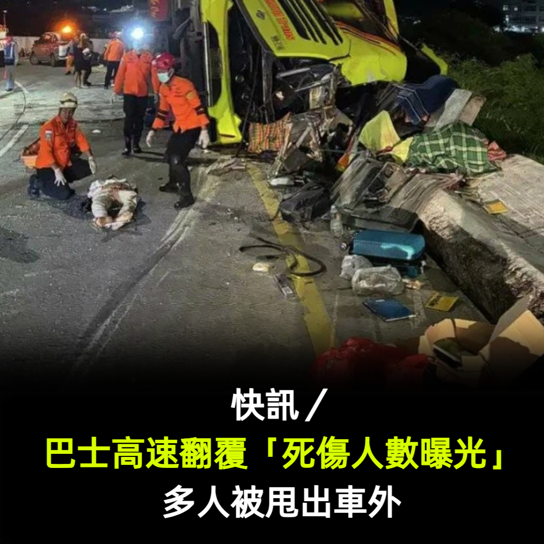 快訊/巴士高速翻覆「死傷人數曝光」!多人被甩出車外