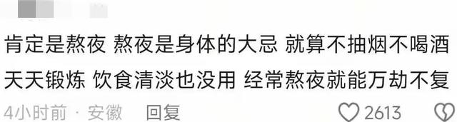 不過有網友就給他分析出了病因:熬夜。就算是不抽菸不喝酒,天天鍛煉,經常熬夜也是身體的大忌。