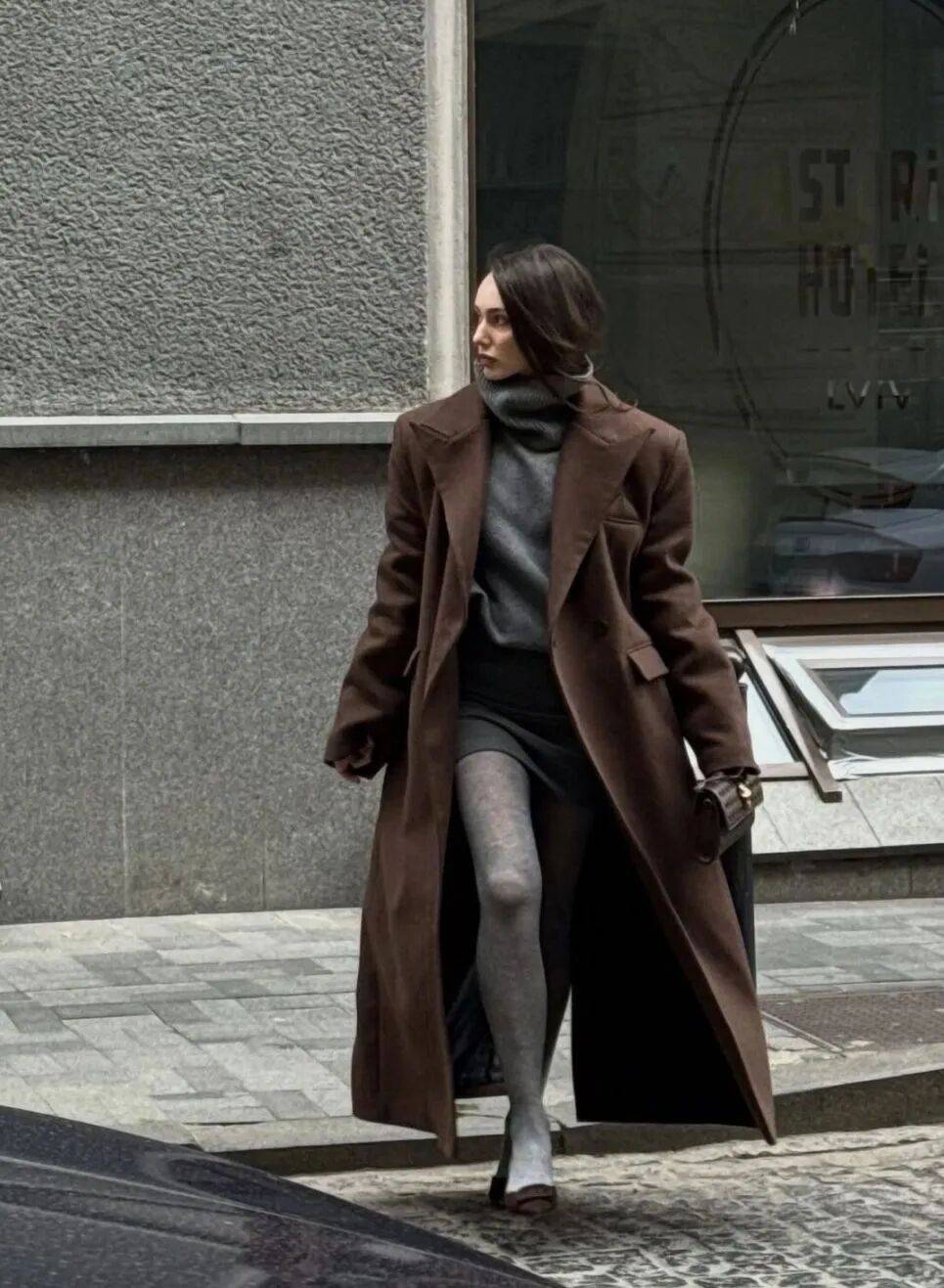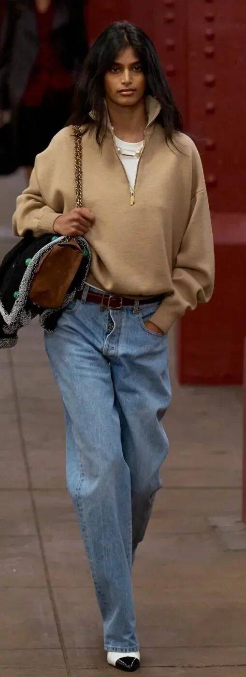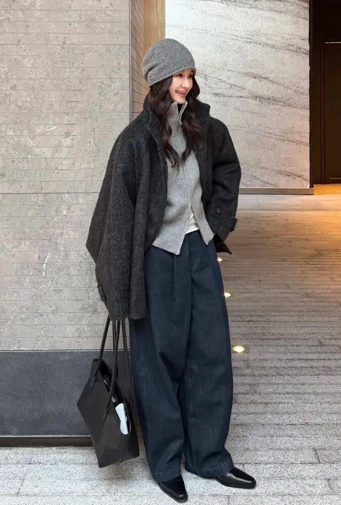 老錢風的外搭講究 「少即是多」,一件剪裁利落的深色西裝外套是首選,面料選啞光質感的羊毛或精紡呢料,避開亮面材質的浮誇感;如果想更顯鬆弛,也可以換一件駝色雙面呢大衣,自帶一種 「閱盡千帆」 的從容。